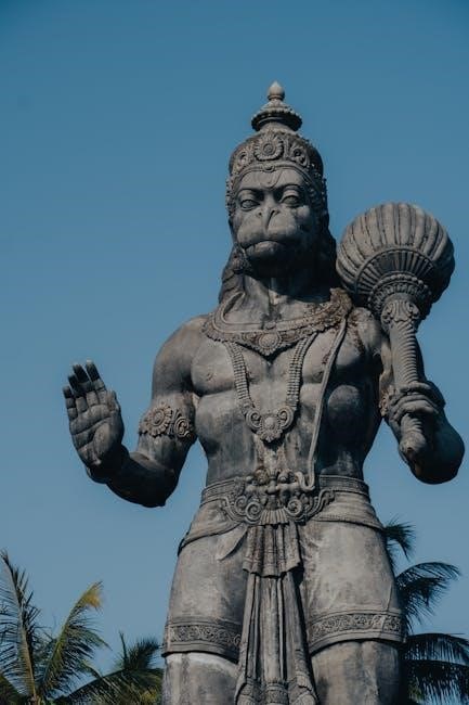 Essentially, it’s a collection of 40 verses praising Hanuman’s qualities, recounting episodes from the epic Ramayana where he demonstrates his unwavering loyalty to Lord Rama, and highlighting his extraordinary powers․ The verses narrate Hanuman’s birth, his encounters, and his pivotal role in assisting Rama in rescuing his wife, Sita․